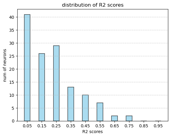 - 对所有神经元执行以上的操作,画出$R^2$的分布。