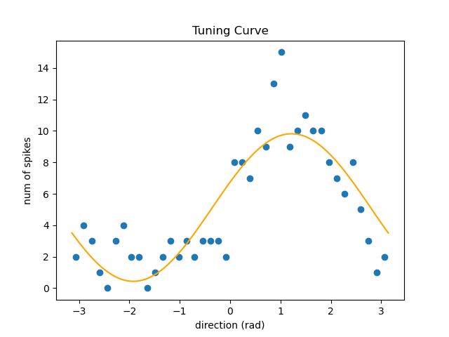要求:对于数据集中的每一个神经元,使用一族参数化的曲线拟合其发放率随运动方向变化的关系。